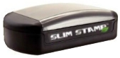 SLIM STAMP Just press down for a clear, clean impression. Stamp pad not needed. Dust cover protects your stamp and prevents ink leakage when you travel. Easy to re-ink.